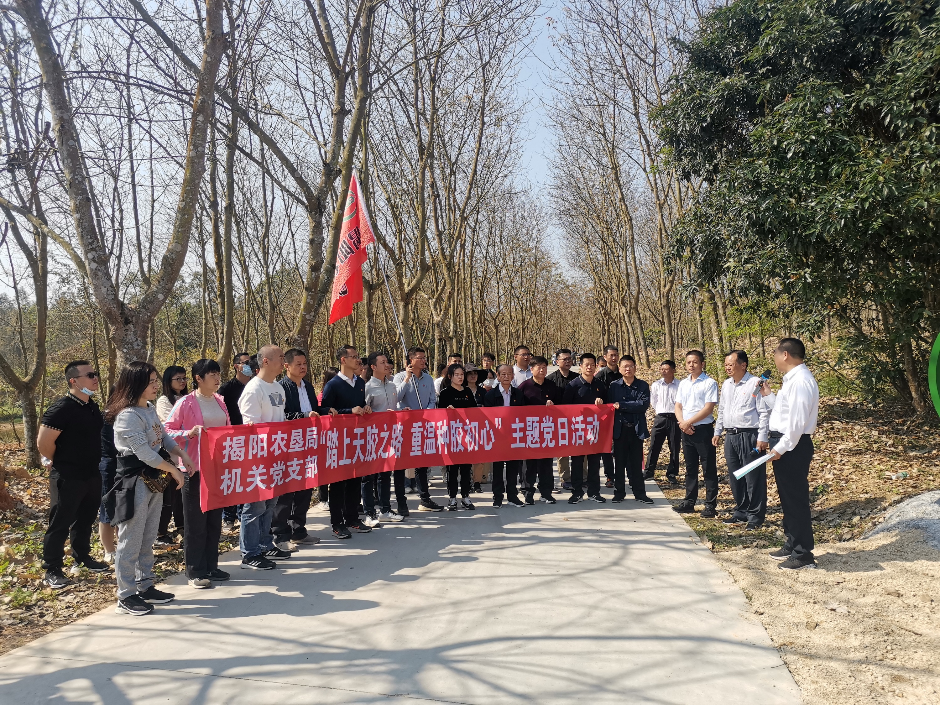 3月11日,揭陽(yáng)農(nóng)墾局機(jī)關(guān)黨支部到卅嶺農(nóng)場(chǎng)開(kāi)展“踏上天膠之路 重溫種膠初心”主題黨日活動(dòng),集團(tuán)公司(局)機(jī)關(guān)本部全體人員參加了活動(dòng)。