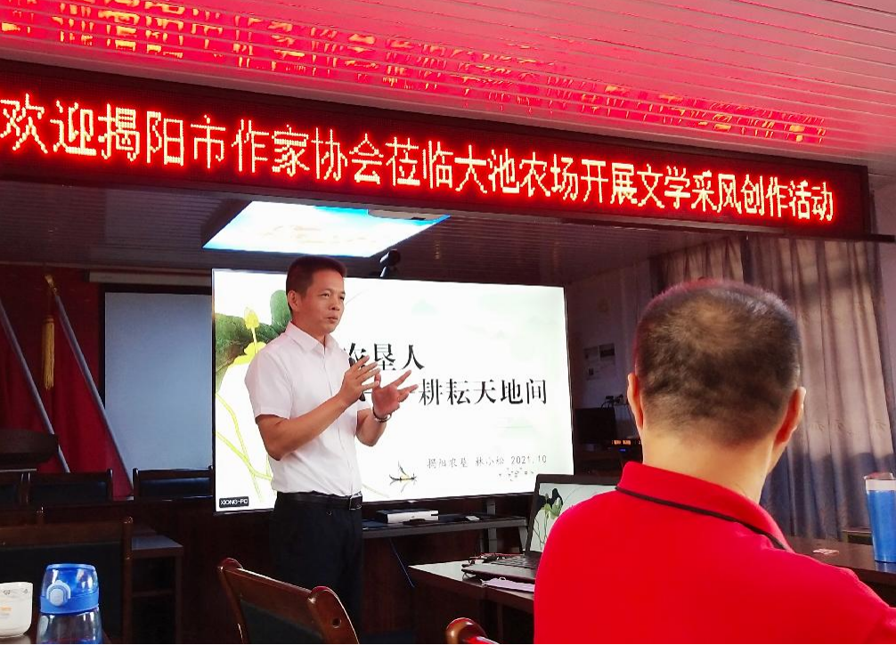 揭陽農(nóng)墾集團(tuán)有限公司 黨組成員、紀(jì)檢組組長、工會主席林小松參加了活動,并做了題為“農(nóng)墾人,耕耘天地間”的推介講演。